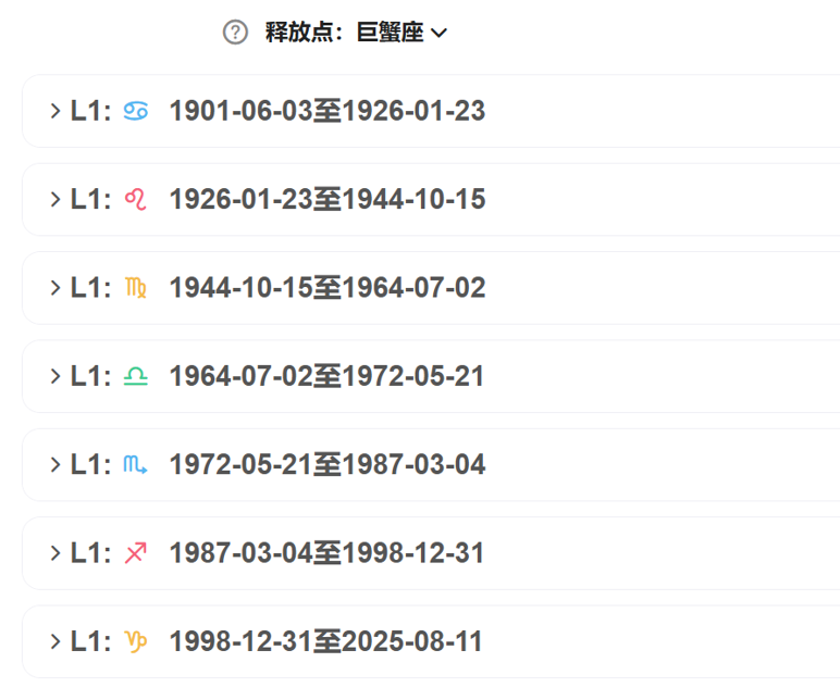 张学良巨蟹座(痛苦点、复仇点)黄道释放表